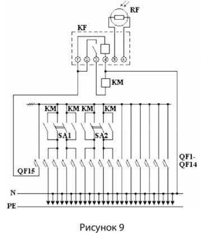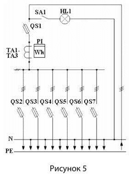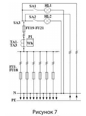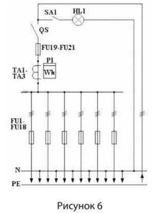 Ввод проводов и кабелей предусмотрен снизу ВРУ, вывод отходящих проводов и кабелей – вверх и вниз.